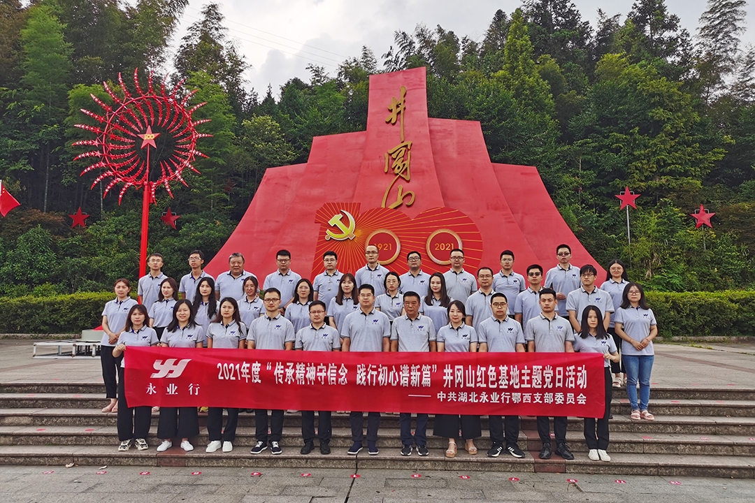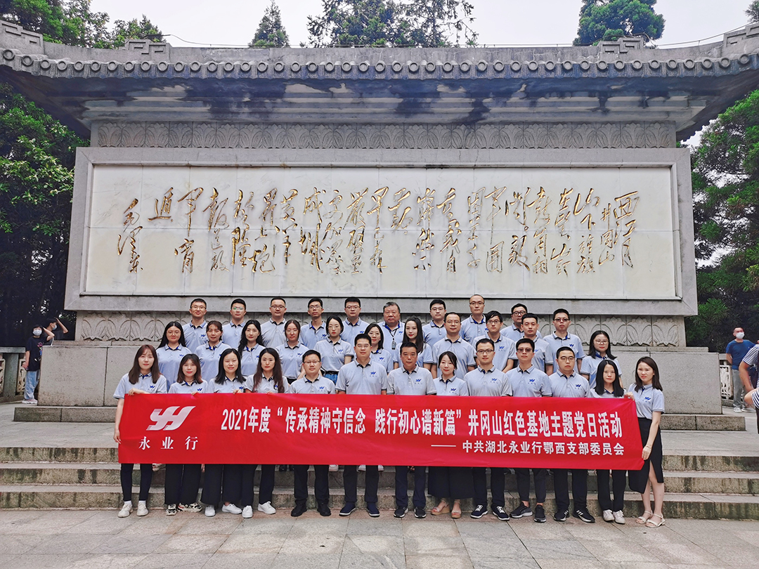 為扎實推進黨史學習教育,進一步強化黨員意識、提升黨性修養,7月23日,中共湖北永業行鄂西黨支部赴井岡山開展“傳承精神守信念 踐行初心譜新篇” 主題黨日活動。永業行黨委委員、鄂西黨支部書記雷小明及30余名支部成員參加本次活動。