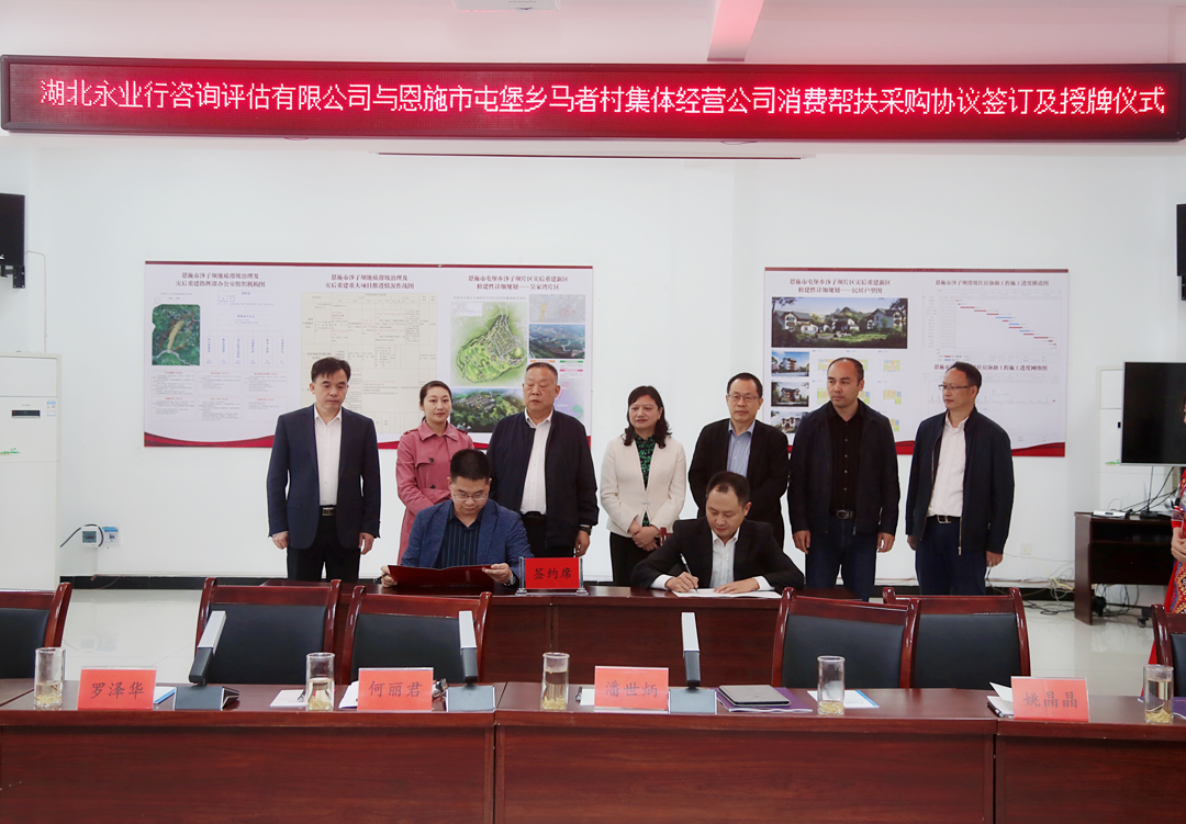 在與會領(lǐng)導(dǎo)的共同見證下,永業(yè)行助理總裁兼鄂西區(qū)總經(jīng)理雷小明與馬者村集體經(jīng)營公司負責(zé)人黃澤永共同簽訂消費幫扶協(xié)議。