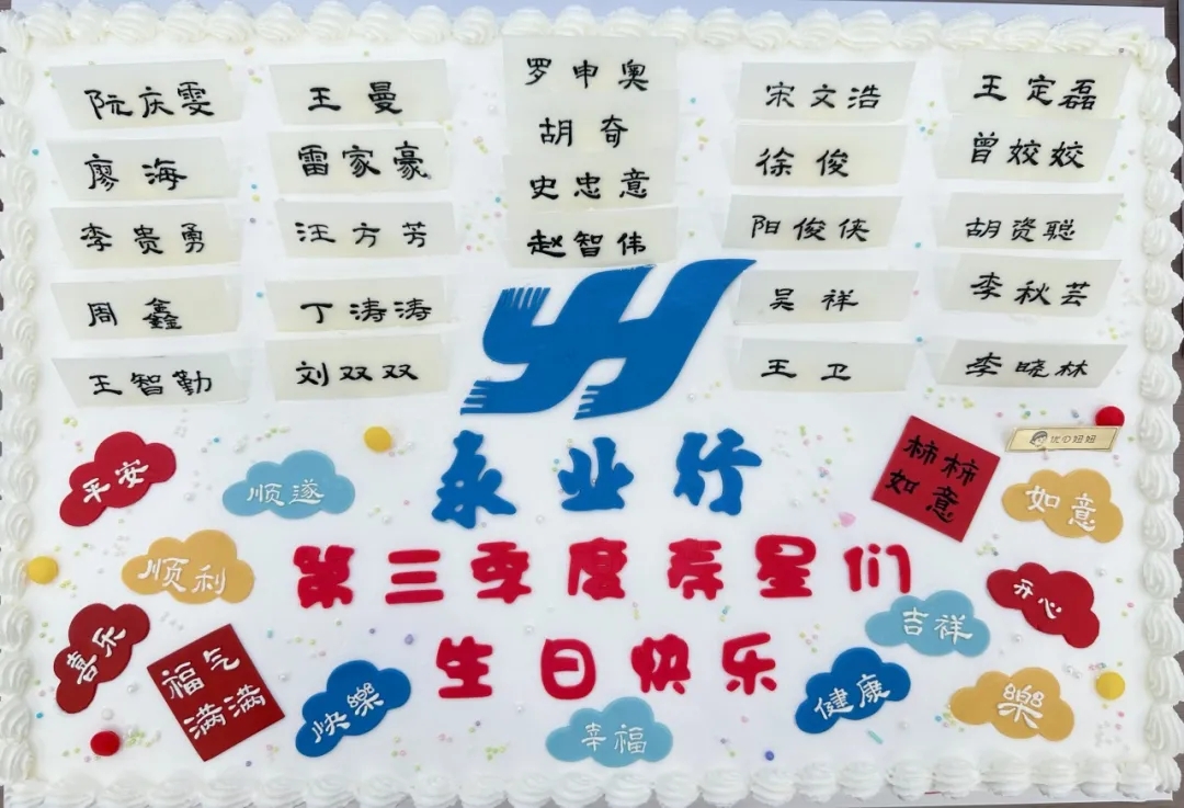 放有所有壽星姓名的生日蛋糕,公司領(lǐng)導、鄂西區(qū)總經(jīng)理雷小明親臨現(xiàn)場獻上生日祝福~滿滿的儀式感,讓小伙伴們倍感溫暖。