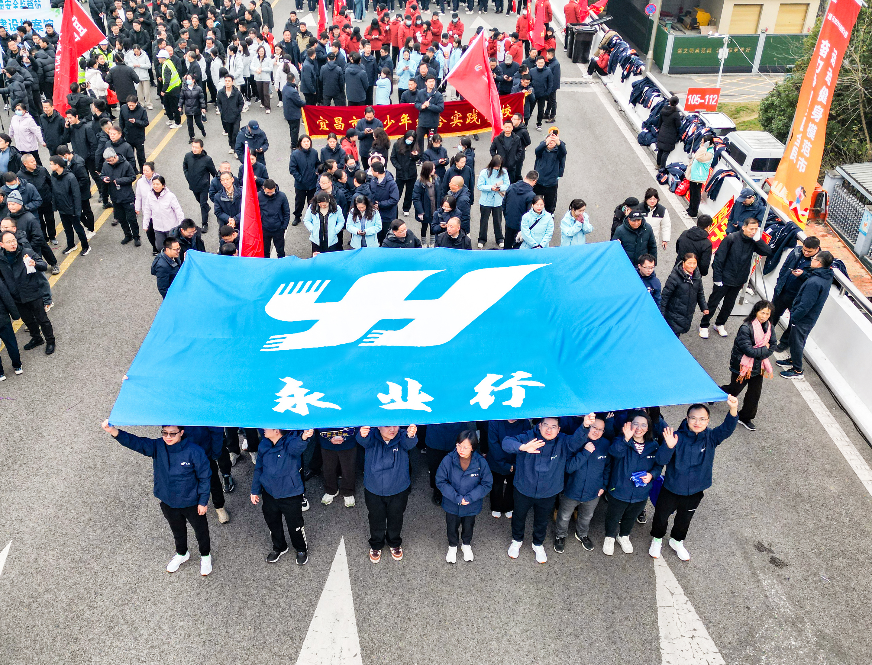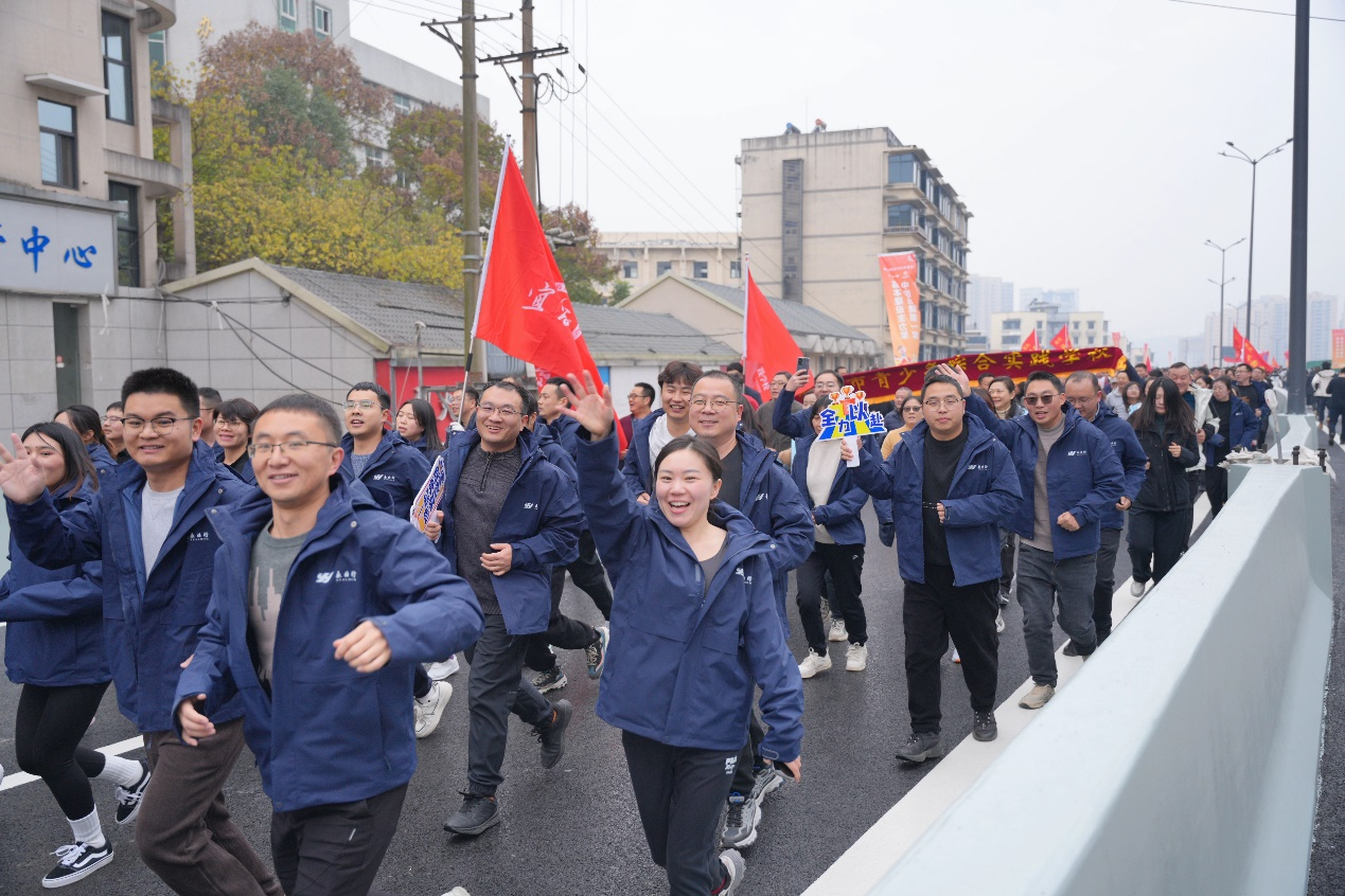 2024年12月30日9:30,宜昌市2025年迎新長跑在夷陵長江大橋舉行。永業行副總裁兼鄂西區總經理雷小明,執行總經理楊懿、黃麗群,副總經理趙智偉等帶領鄂西區60余名員工參加活動。