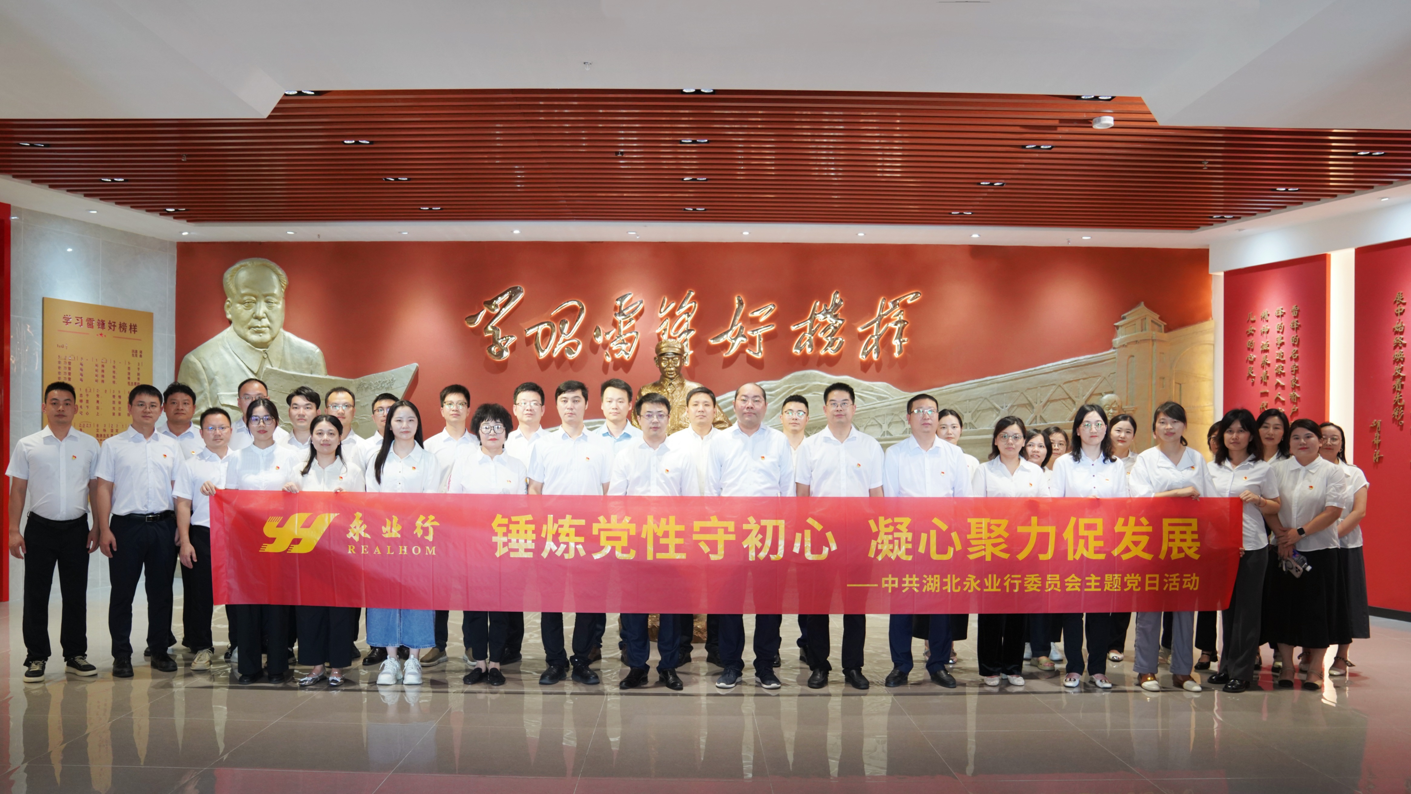 2025年7月12日,中共湖北永業(yè)行委員會組織開展“錘煉黨性守初心 凝心聚力促發(fā)展”主題黨日活動,赴咸寧嘉魚縣武漢東湖學(xué)院雷鋒文史館參觀學(xué)習(xí)。本次活動特邀民進(jìn)湖北永業(yè)行支部、民革湖北永業(yè)行支部、農(nóng)工黨湖北永業(yè)行支部等統(tǒng)戰(zhàn)人士及中高層管理人員、骨干員工一行60余人參加活動。